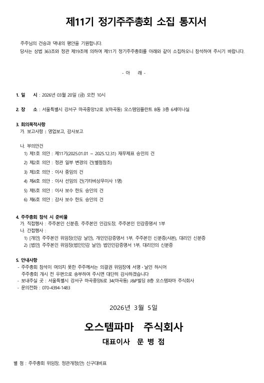 제11기 주주총회 소집통지서 및 위임장_오스템파마.pdf